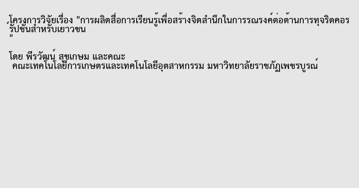 การผลิตสื่อการเรียนรู้เพื่อสร้างจิตสำนึกในการรณรงค์ต่อต้านการทุจริตคอร์รัปชั่นสำหรับเยาวชน
