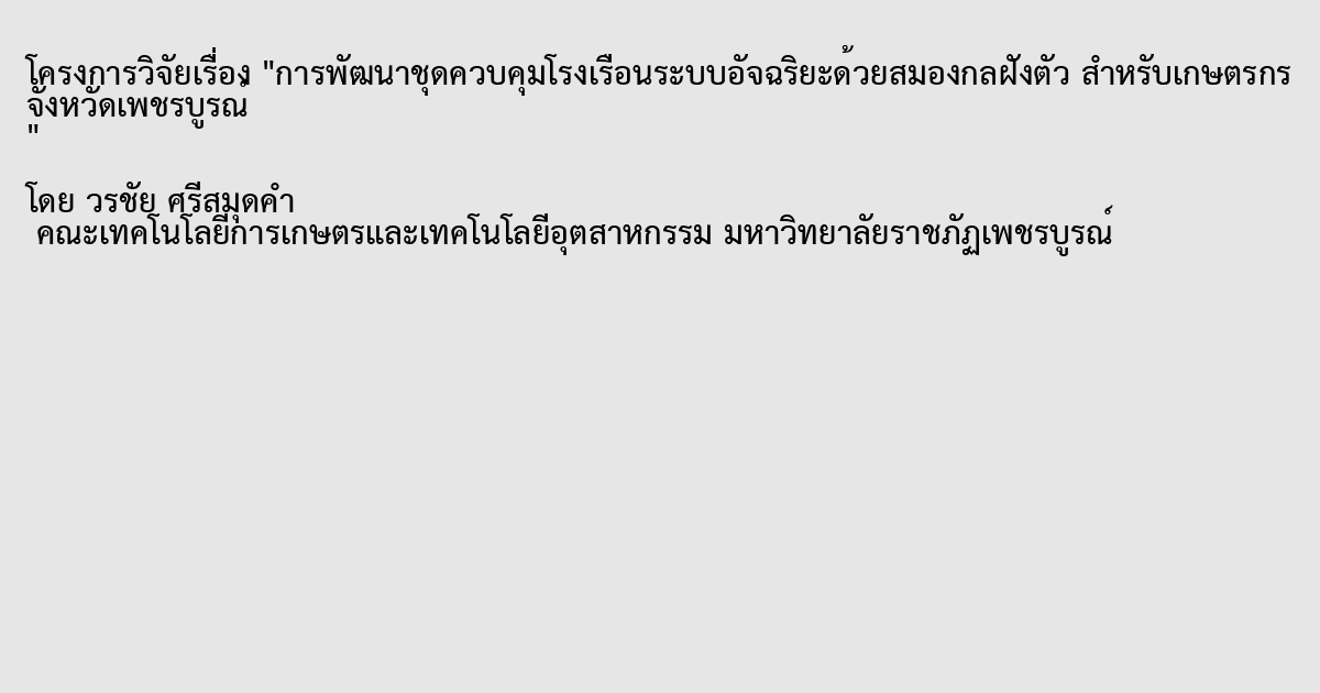 การพัฒนาชุดควบคุมโรงเรือนระบบอัจฉริยะด้วยสมองกลฝังตัว สำหรับเกษตรกร จังหวัดเพชรบูรณ์