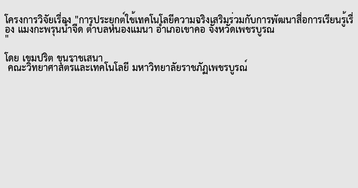 การประยุกต์ใช้เทคโนโลยีความจริงเสริมร่วมกับการพัฒนาสื่อการเรียนรู้เรื่อง แมงกะพรุนน้ำจืด ตำบลหนองแม่นา อำเภอเขาค้อ จังหวัดเพชรบูรณ์