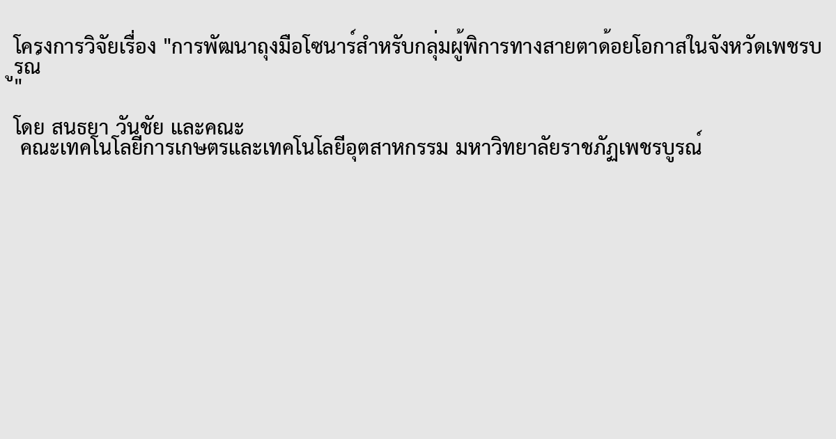 การพัฒนาถุงมือโซนาร์สำหรับกลุ่มผู้พิการทางสายตาด้อยโอกาสในจังหวัดเพชรบูรณ์