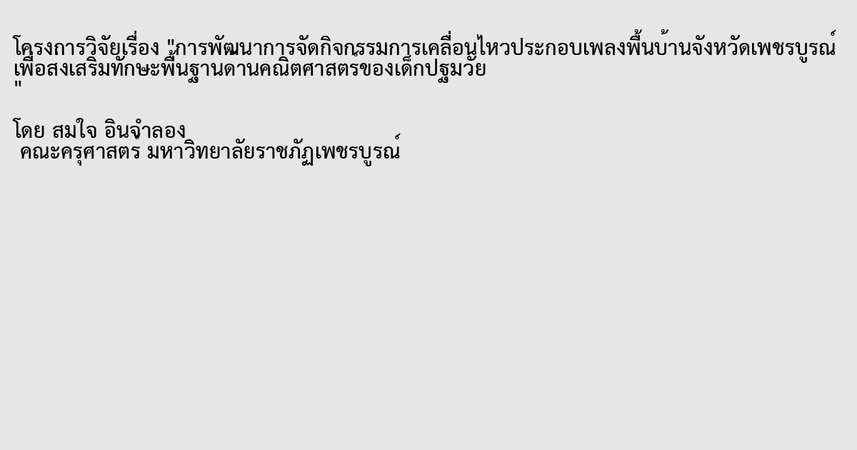 การพัฒนาการจัดกิจกรรมการเคลื่อนไหวประกอบเพลงพื้นบ้านจังหวัดเพชรบูรณ์ เพื่อส่งเสริมทักษะพื้นฐานด้านคณิตศาสตร์ของเด็กปฐมวัย