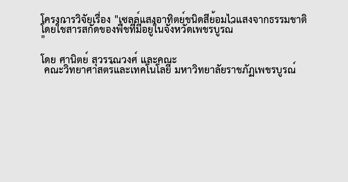 พืชในจังหวัดเพชรบูรณ์,สีย้อมไวแสง,เซลล์แสงอาทิตย์ชนิดสีย้อมไวแสง,plant in Phetchabun province,Dye-sensitized,Dye-sensitized solar cells