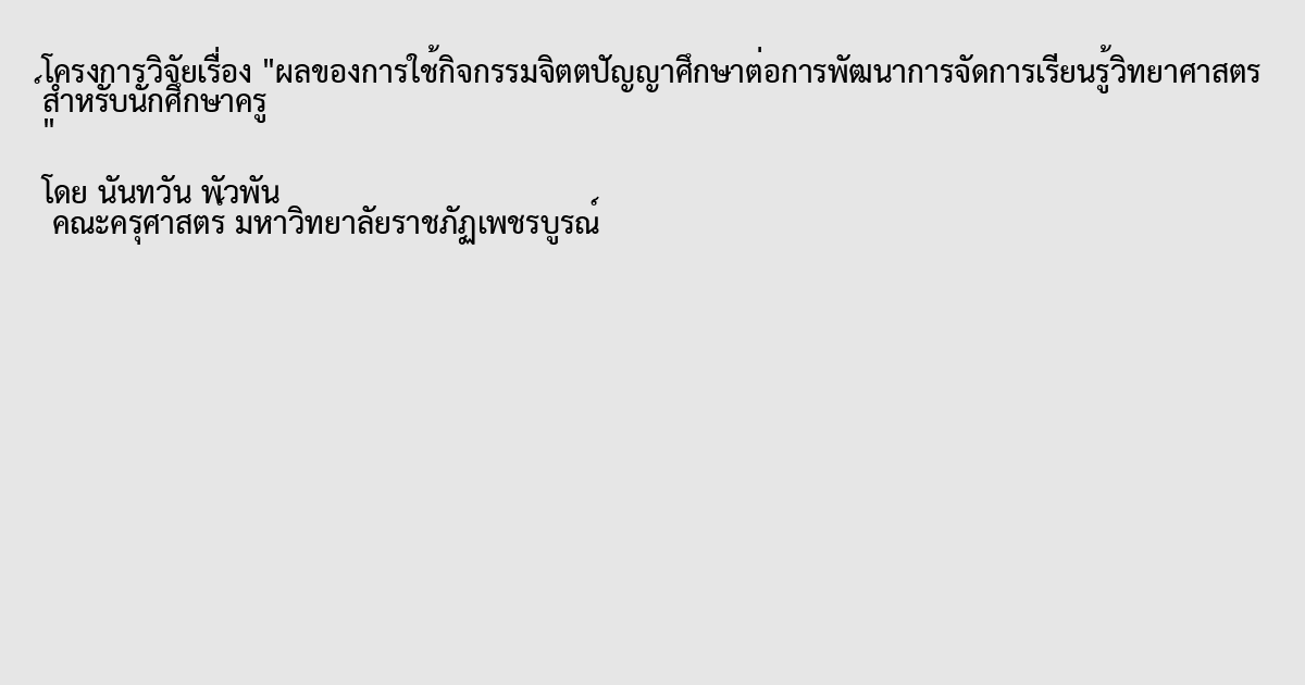 คำสำคัญ จิตตปัญญาศึกษา, การจัดการเรียนรู้วิทยาศาสตร์, นักศึกษาครูวิทยาศาสตร์