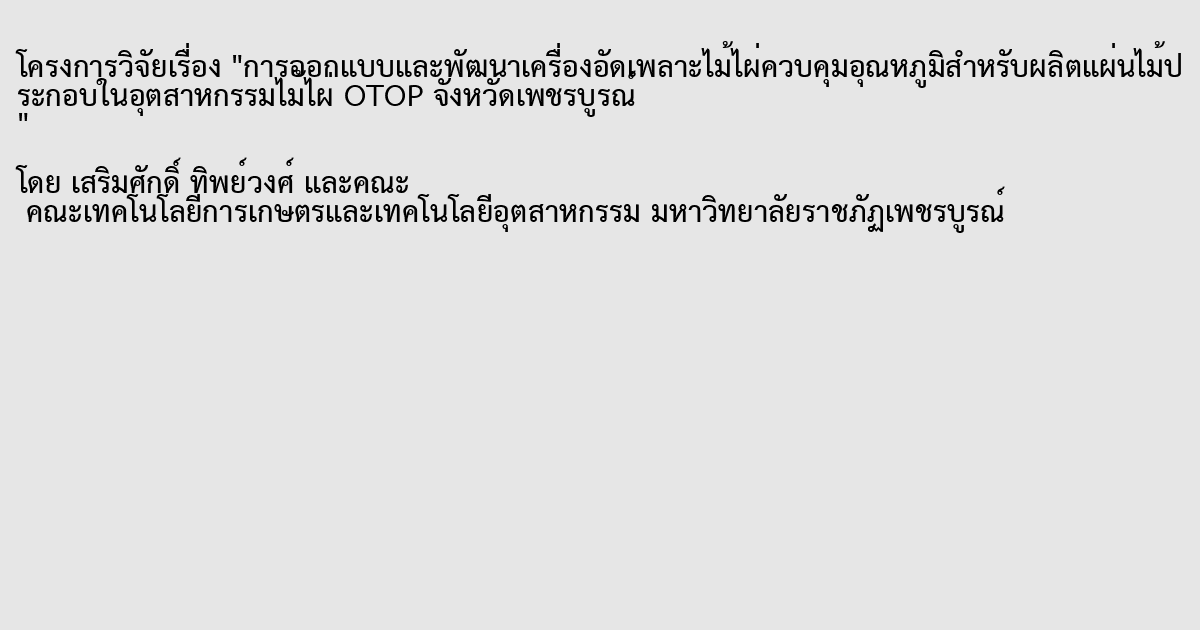 การออกแบบและพัฒนาเครื่องอัดเพลาะไม้ไผ่ควบคุมอุณหภูมิสำหรับผลิตแผ่นไม้ประกอบในอุตสาหกรรมไม้ไผ่ OTOP จังหวัดเพชรบูรณ์