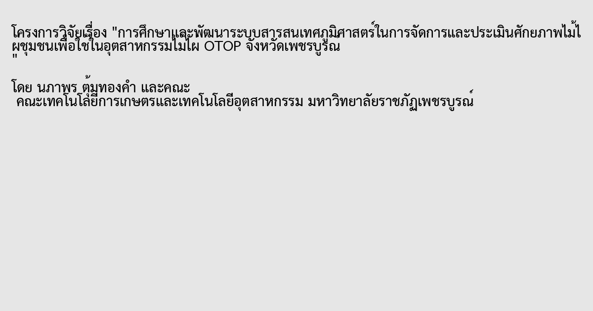 การศึกษาและพัฒนาระบบสารสนเทศภูมิศาสตร์ในการจัดการและประเมินศักยภาพไม้ไผ่ชุมชนเพื่อใช้ในอุตสาหกรรมไม้ไผ่ OTOP จังหวัดเพชรบูรณ์