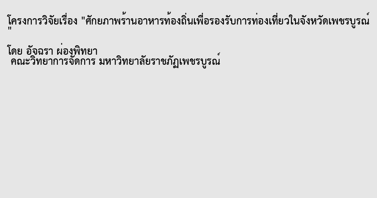 ศักยภาพร้านอาหารท้องถิ่นเพื่อรองรับการท่องเที่ยวในจังหวัดเพชรบูรณ์