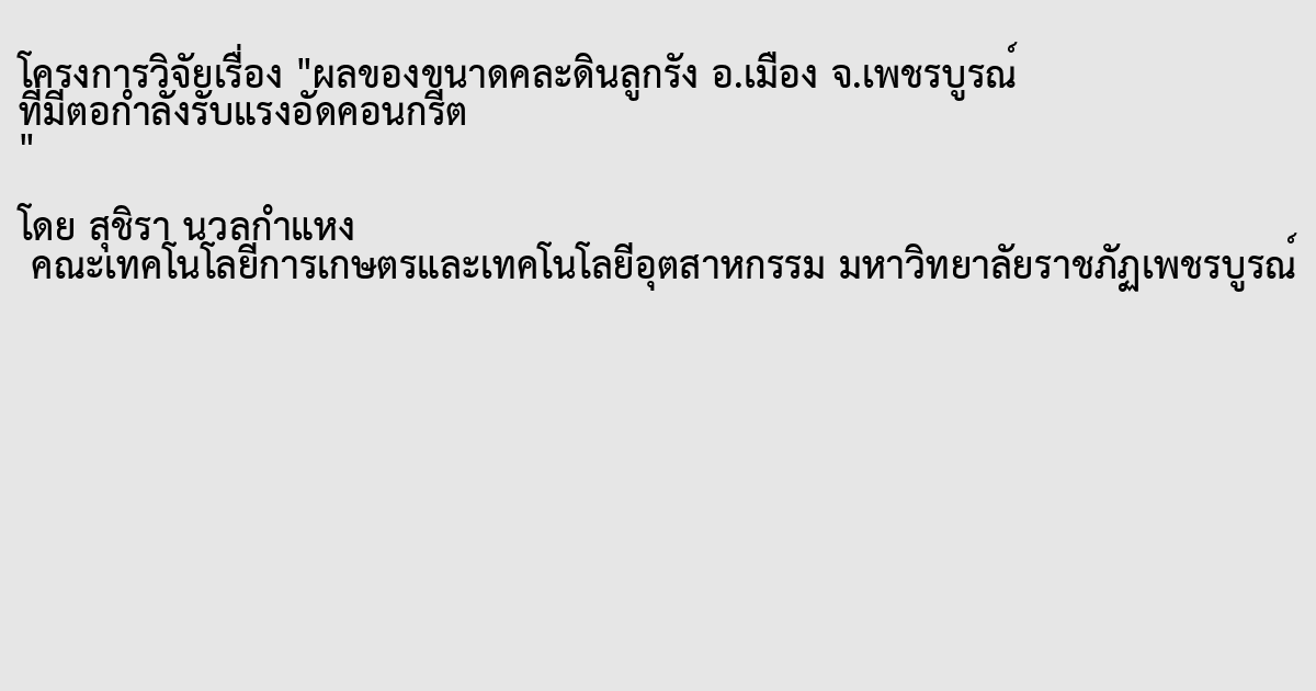 The effect of the size of dirt soil in Muang District Phetchabun Province on the compressive strength of concrete.