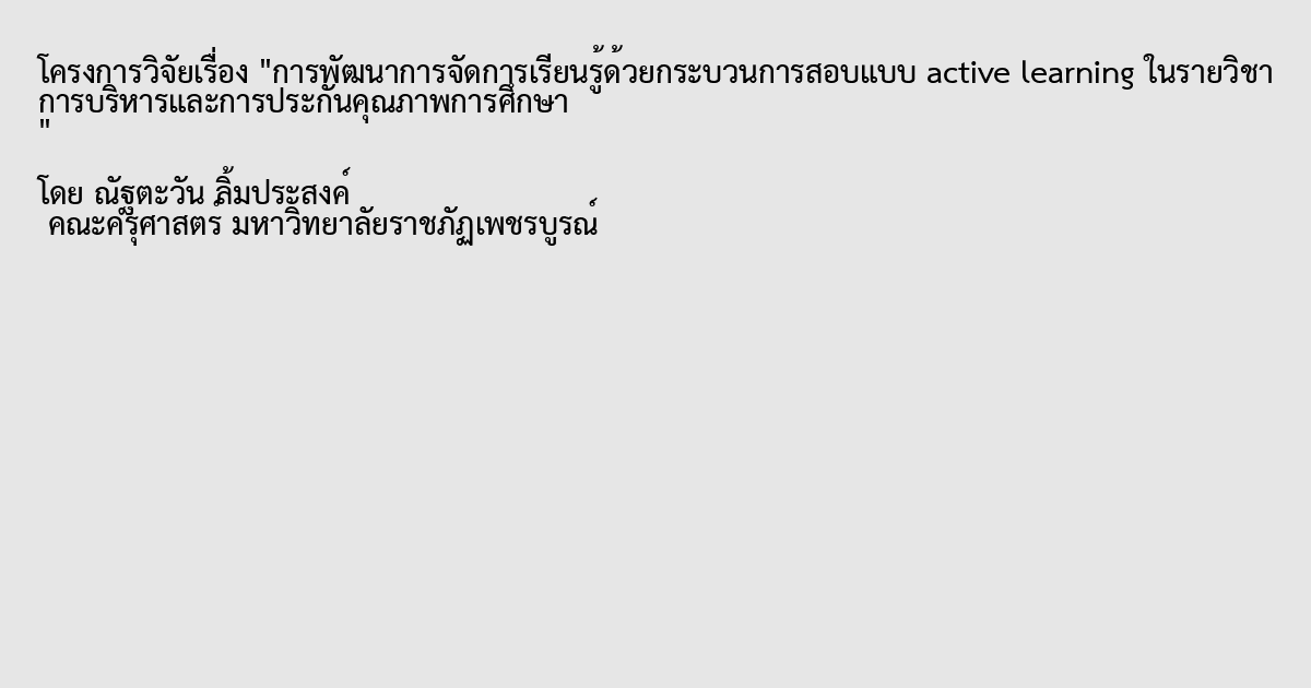 การพัฒนาการจัดการเรียนรู้ด้วยกระบวนการสอบแบบ active learning ในรายวิชา การบริหารและการประกันคุณภาพการศึกษา