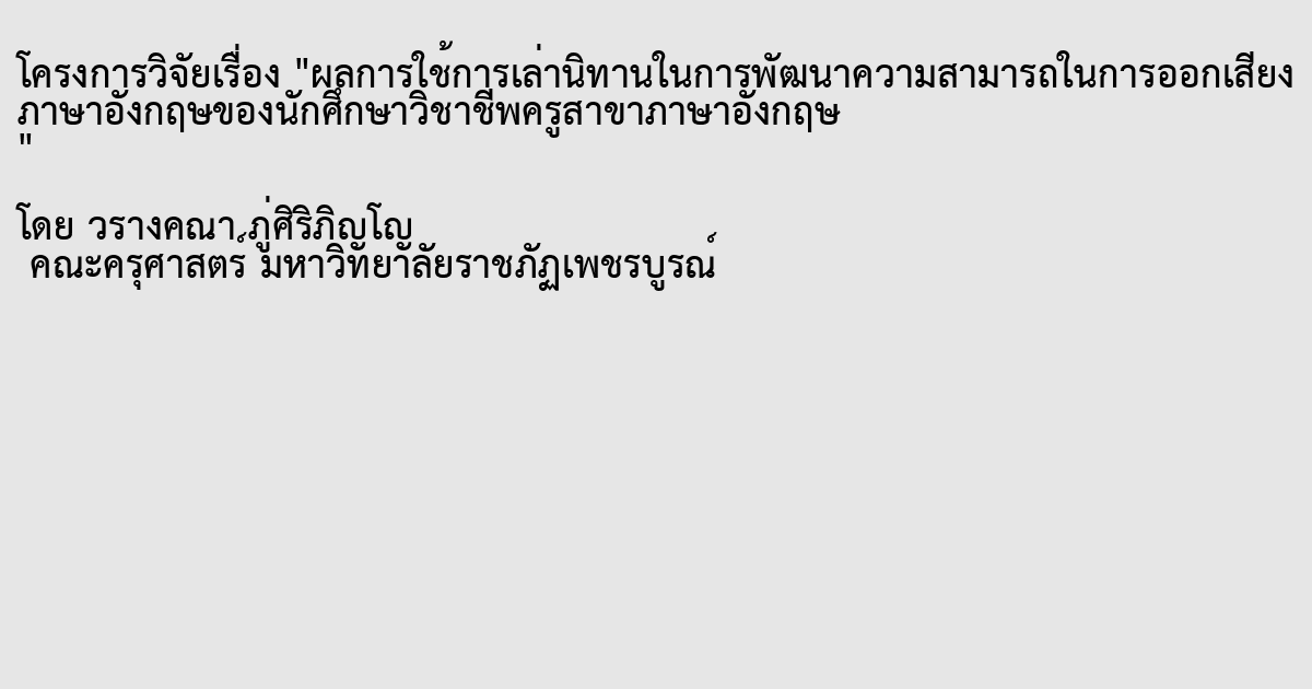 ผลการใช้การเล่านิทานในการพัฒนาความสามารถในการออกเสียง ภาษาอังกฤษของนักศึกษาวิชาชีพครูสาขาภาษาอังกฤษ