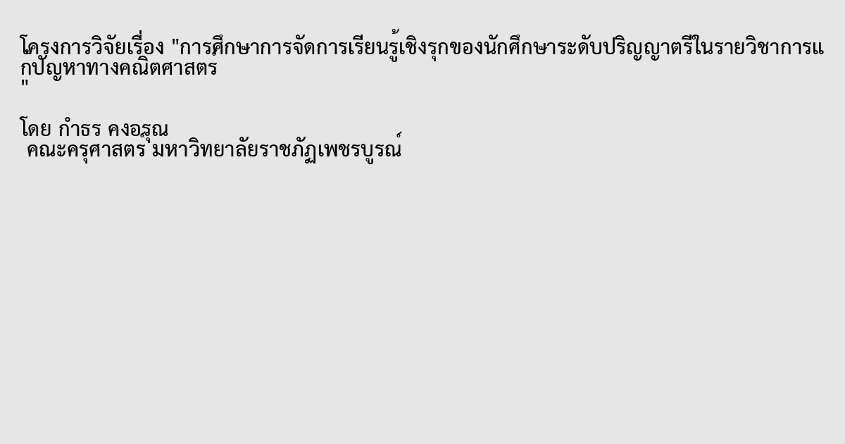 การศึกษาการจัดการเรียนรู้เชิงรุกของนักศึกษาระดับปริญญาตรีในรายวิชาการแก้ปัญหาทางคณิตศาสตร์