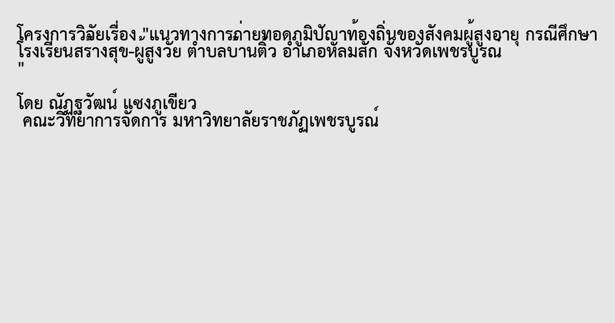 แนวทางการถ่ายทอดภูมิปัญาท้องถิ่นของสังคมผู้สูงอายุ กรณีศึกษา โรงเรียนสร้างสุข-ผู้สูงวัย ตำบลบ้านติ้ว อำเภอหล่มสัก จังหวัดเพชรบูรณ์