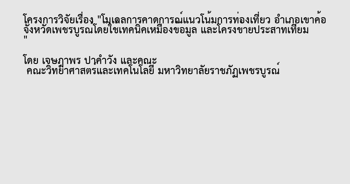 โมเดลการคาดการณ์แนวโน้มการท่องเที่ยว อำเภอเขาค้อ จังหวัดเพชรบูรณ์โดยใช้เทคนิคเหมืองข้อมูล และโครงข่ายประสาทเทียม