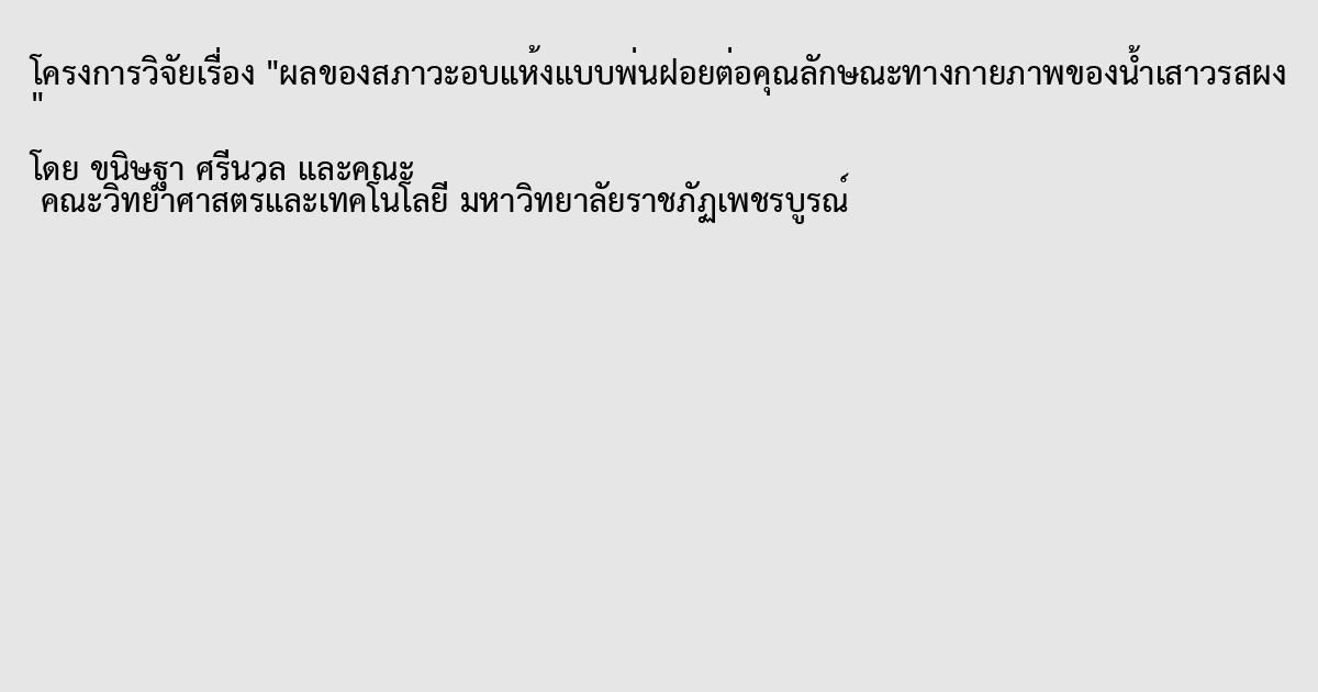 ผลของสภาวะอบแห้งแบบพ่นฝอยต่อคุณลักษณะทางกายภาพของน้ำเสาวรสผง