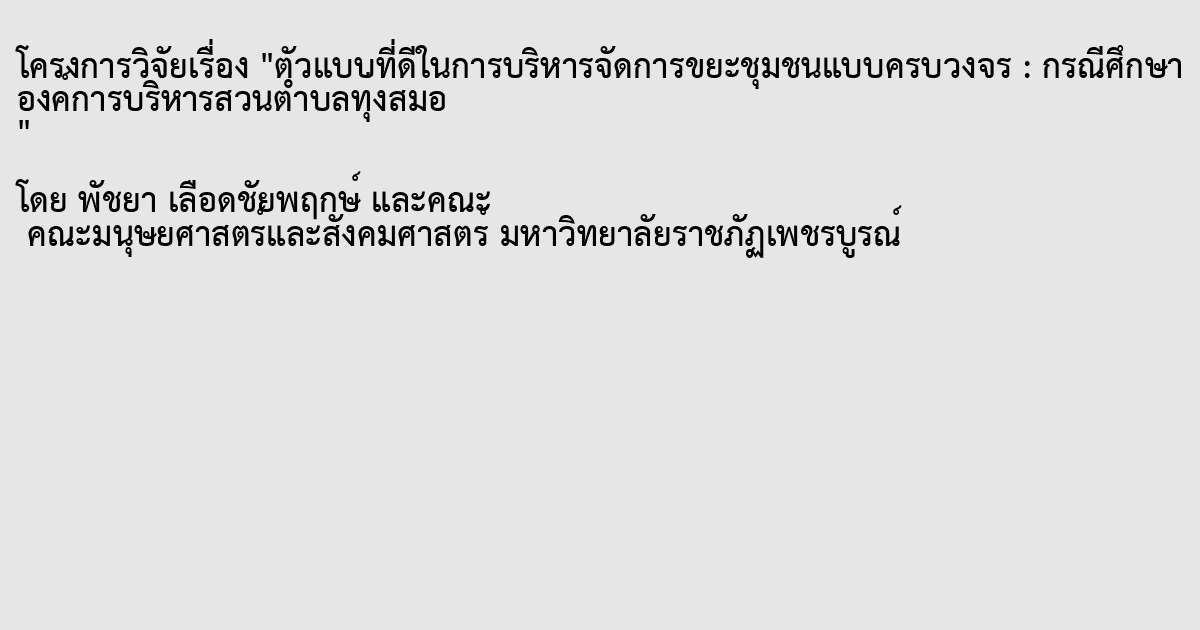ตัวแบบที่ดีในการบริหารจัดการขยะชุมชนแบบครบวงจร : กรณีศึกษา องค์การบริหารส่วนตำบลทุ่งสมอ