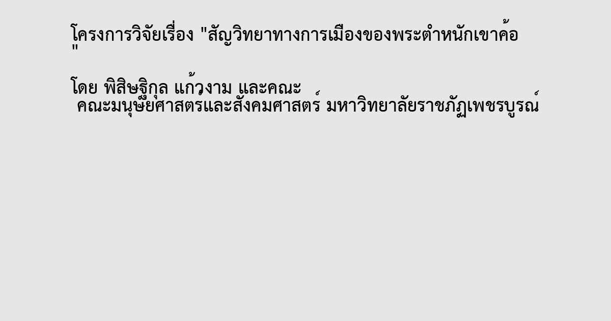 The result of the research found the reason (the denotations) in the construction of the palace was the grateful of the Phetchabun people in the King RAMA IX. The palace also the memorial of the subdue of The Communist Party of Thailand, the morale support to the people whom lived in the battlefield, the King’s work place and recreation. The uniqueness (the connotations) of the palace reveal some myths and its cultural backgrond; his majesty the king’s ordinary lifestyles; the subdue of The Communist Party of Thailand; and the extremely worship to the Monarchy of Phetchabun people.