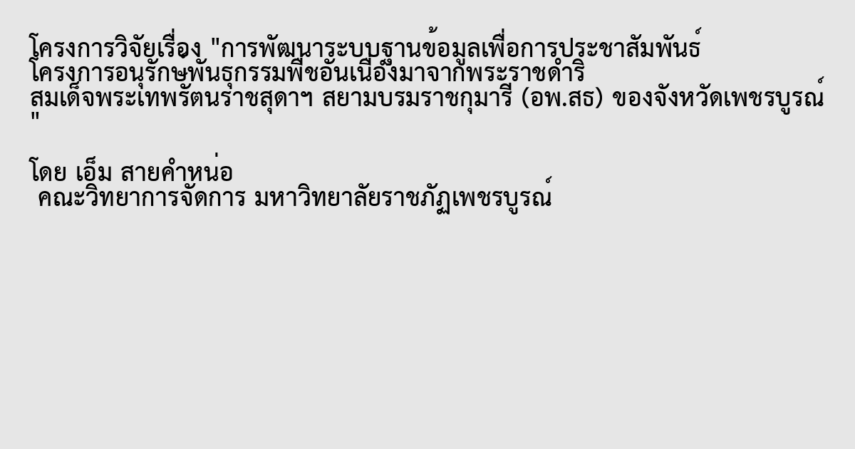 การพัฒนาระบบฐานข้อมูลเพื่อการประชาสัมพันธ์ โครงการอนุรักษ์พันธุกรรมพืชอันเนื่องมาจากพระราชดำริ สมเด็จพระเทพรัตนราชสุดาฯ สยามบรมราชกุมารี (อพ.สธ) ของจังหวัดเพชรบูรณ์