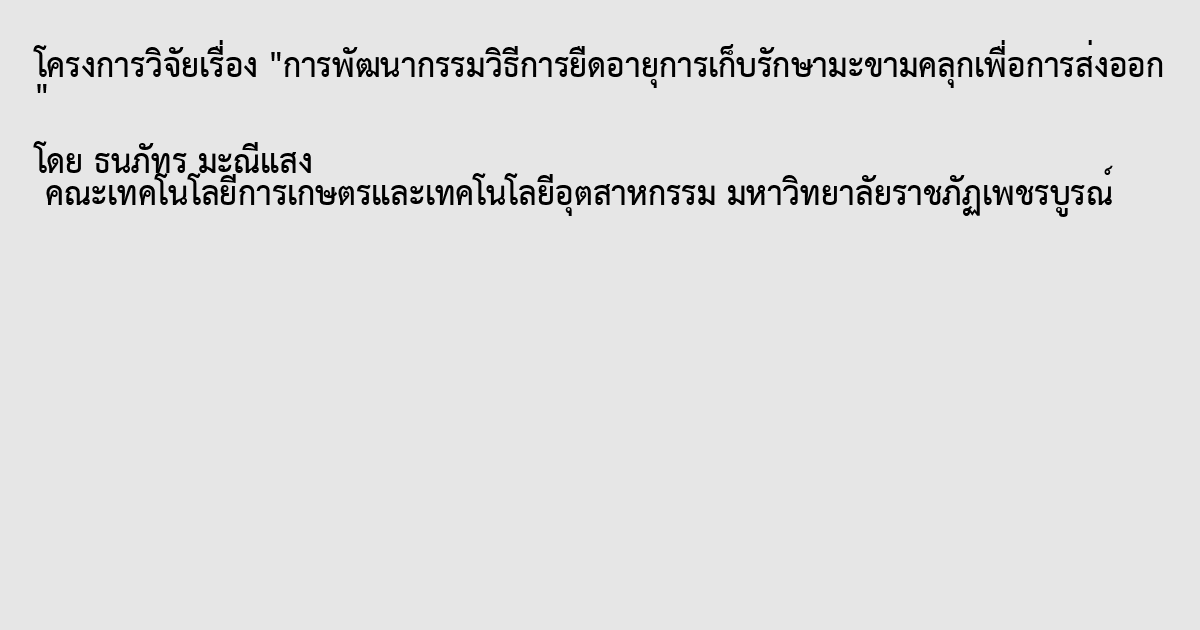 การพัฒนากรรมวิธีการยืดอายุการเก็บรักษามะขามคลุกเพื่อการส่งออก