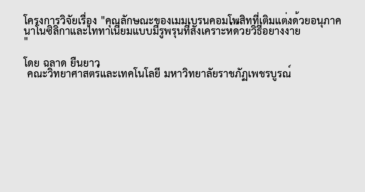 คุณลักษณะ,อนุภาคนาโนแบบมีรูพรุน,ซิลิกา,ไททาเนียม,เมมเบรนคอมโพสิท,Characteristics,porous nanoparticles,silica,titanium,composite membrane