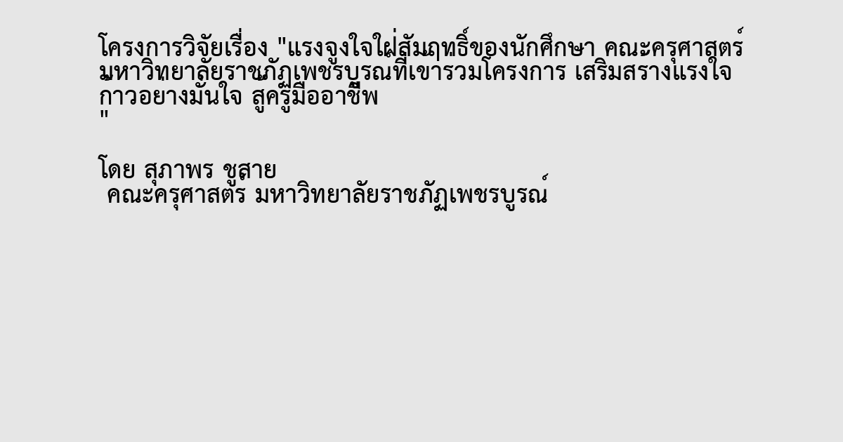 งานวิจัยนี้มีวัตถุประสงค์ 1) เพื่อศึกษาแรงจูงใจใฝ่สัมฤทธิ์ของนักศึกษาคณะครุศาสตร์ มหาวิทยาลัยราชภัฏเพชรบูรณ์ จำแนกตามปัจจัยส่วนบุคคล 2) เพื่อเปรียบเทียบแรงจูงใจใฝ่สัมฤทธิ์ของนักศึกษาคณะครุศาสตร์ มหาวิทยาลัยราชภัฏเพชรบูรณ์ ก่อนและหลังการเข้าร่วมโครงการ เสริมสร้างแรงใจ ก้าวอย่างมั่นใจ สู่ครูมืออาชีพ กลุ่มตัวอย่างที่ใช้ในการวิจัยเป็นกลุ่มตัวอย่างที่ใช้ในการวิจัย ได้แก่ นักศึกษาที่เข้าร่วมโครงการ เสริมสร้างแรงใจ ก้าวอย่างมั่นใจ สู่ครูมืออาชีพ จำนวน 40 คน เครื่องมือที่ใช้ในการวิจัย เป็นแบบสอบถามและแบบสะท้อนความรู้สึก เพื่อศึกษาแรงจูงใจใฝ่สัมฤทธิ์ของนักศึกษาที่เข้าร่วมโครงการ เสริมสร้างแรงใจ ก้าวอย่างมั่นใจ สู่ครูมืออาชีพ สถิติที่ใช้ในการวิเคราะห์ข้อมูล ได้แก่ สถิติเชิงพรรณนา ใช้วิเคราะห์ข้อมูลสถานภาพส่วนตัวของประชากร โดยใช้สถิติ ค่าเฉลี่ย (Mean) ร้อยละ (Percentage) และส่วนเบี่ยงเบนมาตรฐาน (Standard Deviation) ค่าต่ำสุด และ ค่าสูงสุด และเปรียบเทียบแรงจูงใจใฝ่สัมฤทธิ์ของนักศึกษาก่อนและหลังเข้าร่วมโครงการ ซึ่งกำหนดค่าความเชื่อมั่นในการทดสอบทางสถิติที่ระดับนัยสำคัญเท่ากับ .05