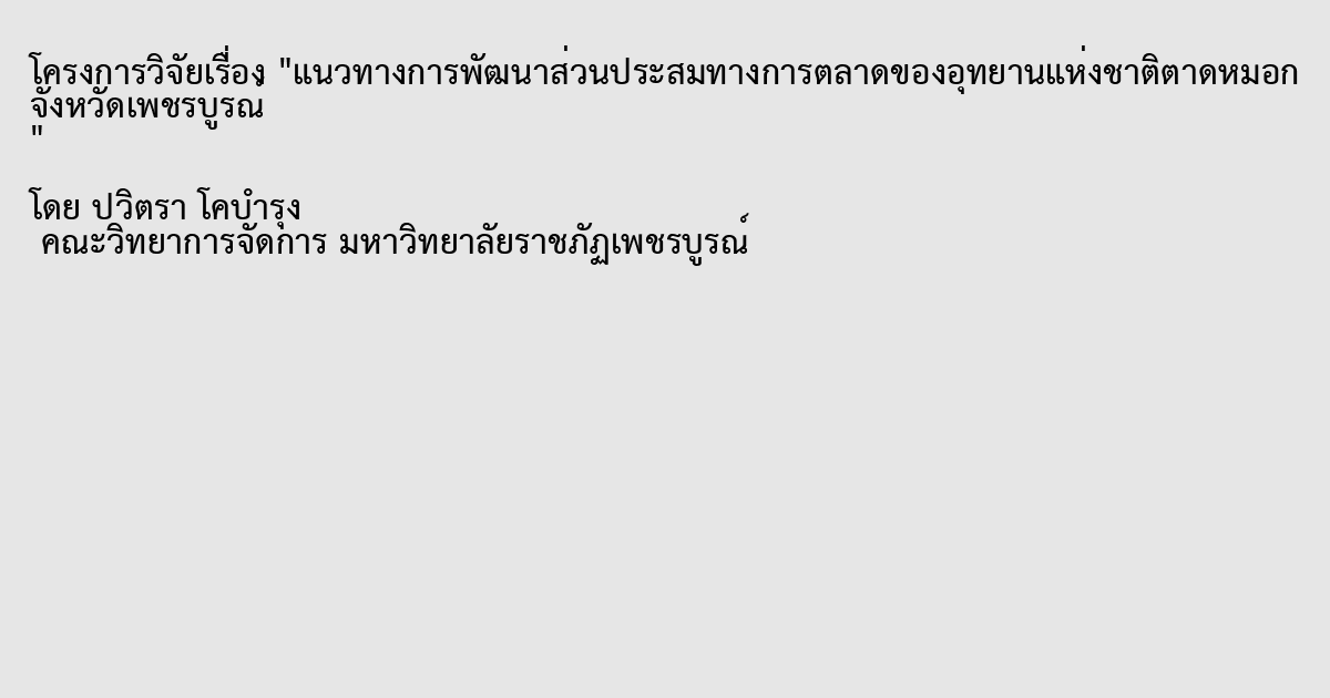 แนวทางการพัฒนาส่วนประสมทางการตลาดของอุทยานแห่งชาติตาดหมอก จังหวัดเพชรบูรณ์