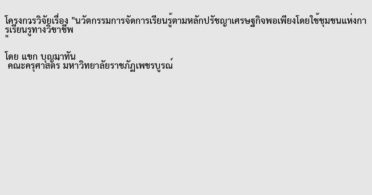 รูปแบบการจัดการเรียนรู้ตามหลักปรัชญาเศรษฐกิจพอเพียง