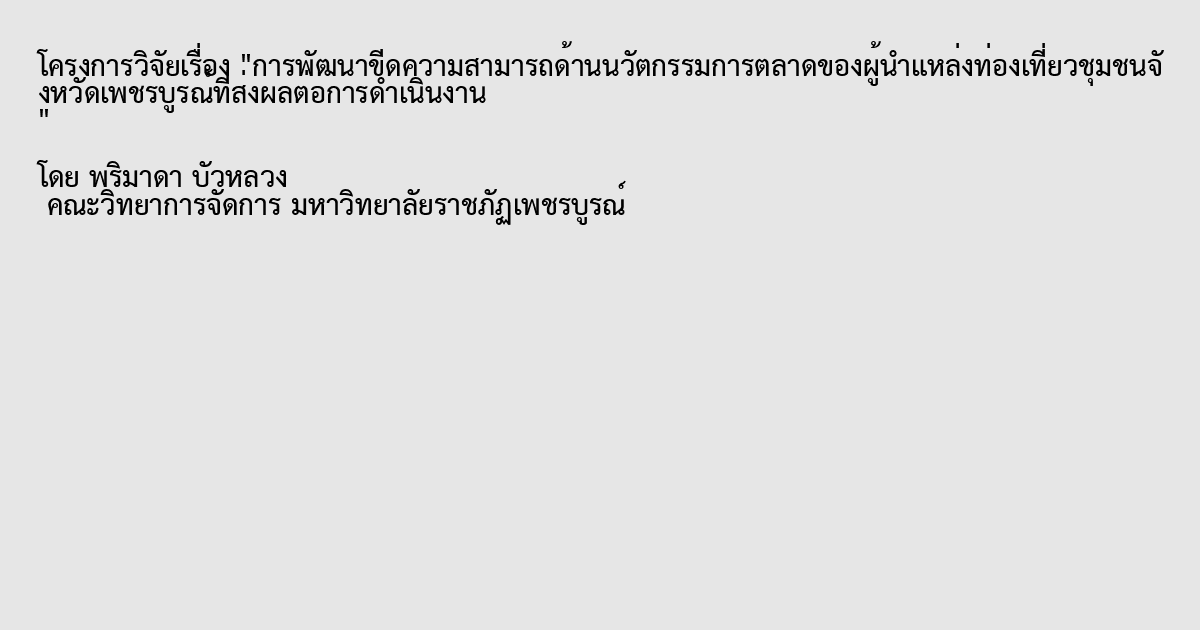 การพัฒนาขีดความสามารถด้านนวัตกรรมการตลาดของผู้นำแหล่งท่องเที่ยวชุมชนจังหวัดเพชรบูรณ์ที่ส่งผลต่อการดำเนินงาน