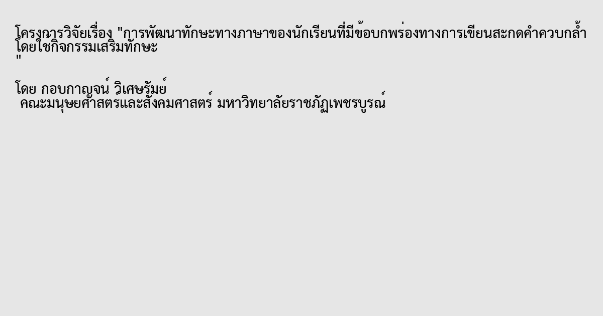 ทักษะทางภาษา,นักเรียนที่มีข้อพบพร่อง,กิจกรรมเสริมทักษะ,Language Skills,Compound consonants writing,Disorder students,Enhancement activities