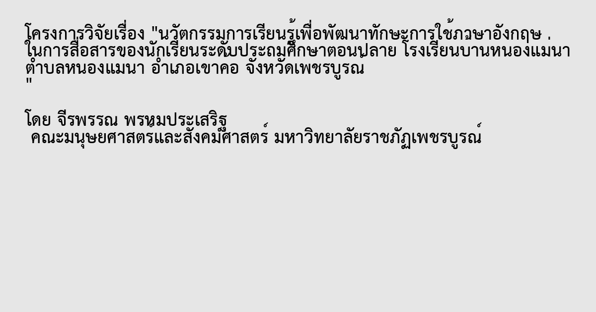 นวัตกรรมการเรียนรู้เพื่อพัฒนาทักษะการใช้ภาษาอังกฤษ ในการสื่อสารของนักเรียนระดับประถมศึกษาตอนปลาย โรงเรียนบ้านหนองแม่นา ตำบลหนองแม่นา อำเภอเขาค้อ จังหวัดเพชรบูรณ์