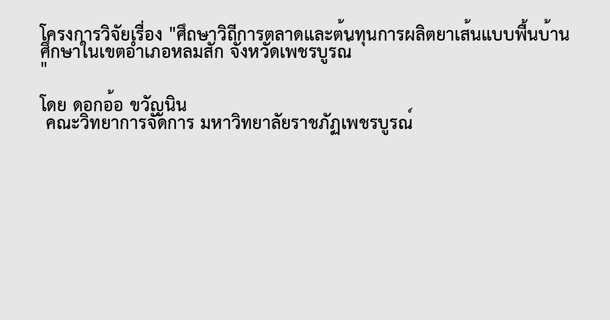 ศึกษาวิถีการตลาดและต้นทุนการผลิตยาเส้นแบบพื้นบ้าน ศึกษาในเขตอำเภอหล่มสัก จังหวัดเพชรบูรณ์