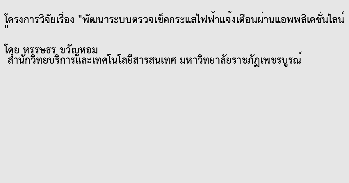 การจัดทำวิจัยครั้งนี้ได้ทำการพัฒนาระบบตรวจเช็คกระแสไฟฟ้าแจ้งเตือนผ่านแอพพลิเคชั่นไลน์ มีวัตถุประสงค์เพื่อให้เจ้าหน้าที่ผู้ดูแลระบบตรวจเช็คกระแสไฟฟ้านอกเวลาราชการ สามารถรู้ได้ว่ากระแสไฟฟ้ามีปัญหา เจ้าหน้าที่สามารถเข้ามาตรวจเช็คอุปกรณ์ระบบสารสนเทศได้ทันเวลา การออกแบบให้ผู้ใช้สามารถเรียนรู้และใช้งานง่าย มีฟังก์ชั่นการทำงานที่สามารถตรวจสอบวันเวลาที่กระแสไฟฟ้ามีปัญหา สะดวก รวดเร็ว