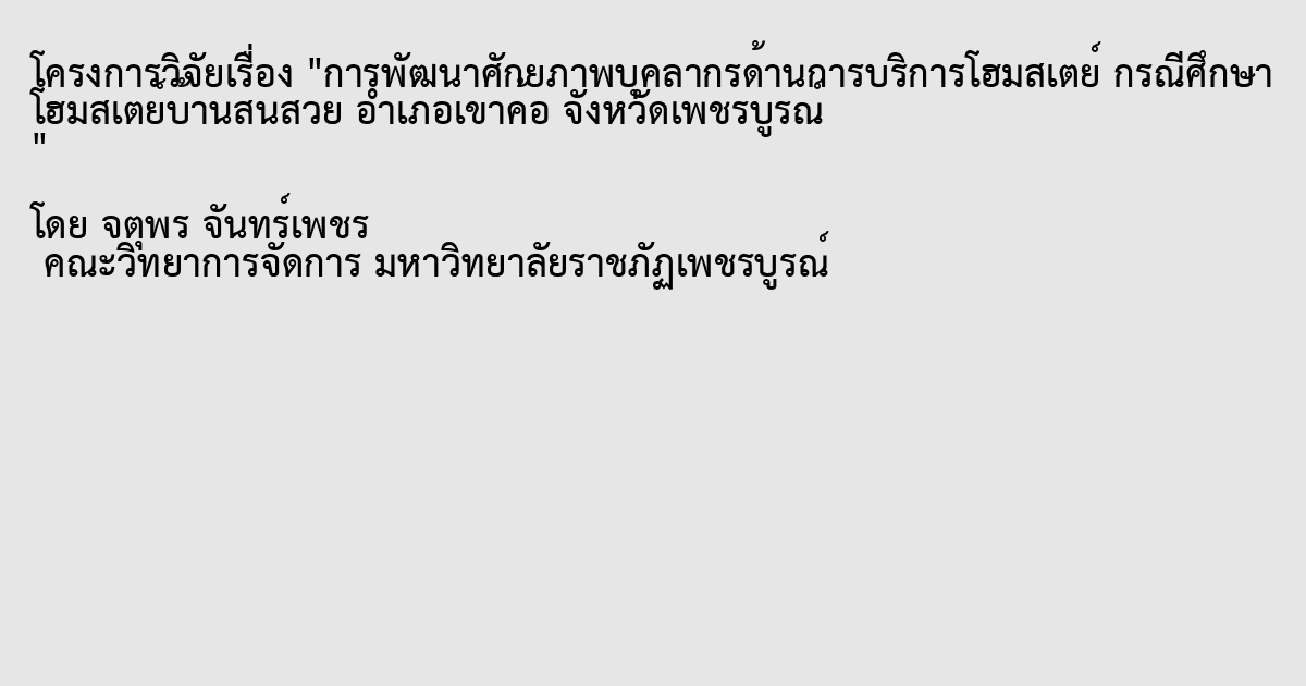 การพัฒนาศักยภาพบุคลากรด้านการบริการโฮมสเตย์ กรณีศึกษา โฮมสเตย์บ้านสนสวย อำเภอเขาค้อ จังหวัดเพชรบูรณ์
