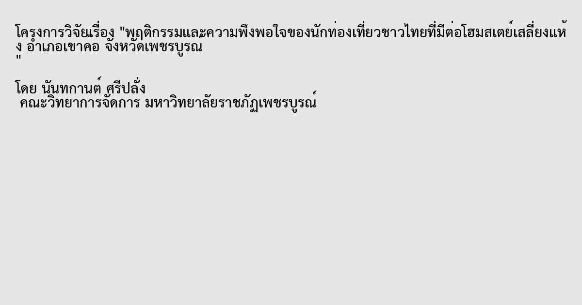 พฤติกรรมและความพึงพอใจของนักท่องเที่ยวชาวไทยที่มีต่อโฮมสเตย์เสลี่ยงแห้ง อำเภอเขาค้อ จังหวัดเพชรบูรณ์