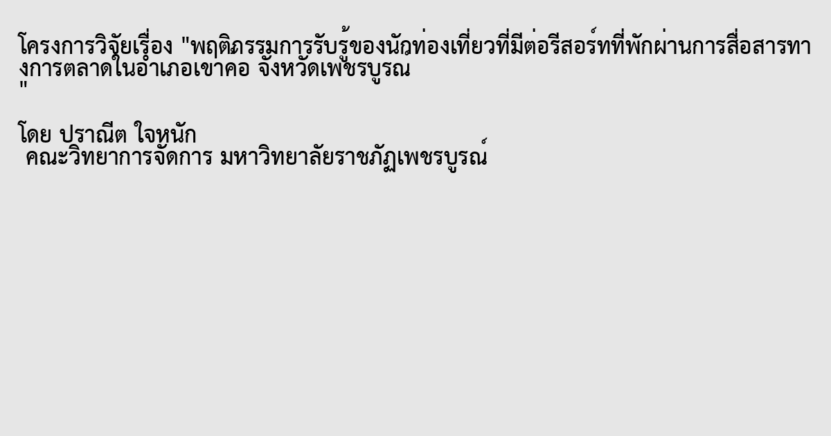 พฤติกรรมการรับรู้ของนักท่องเที่ยวที่มีต่อรีสอร์ทที่พักผ่านการสื่อสารทางการตลาดในอำเภอเขาค้อ จังหวัดเพชรบูรณ์