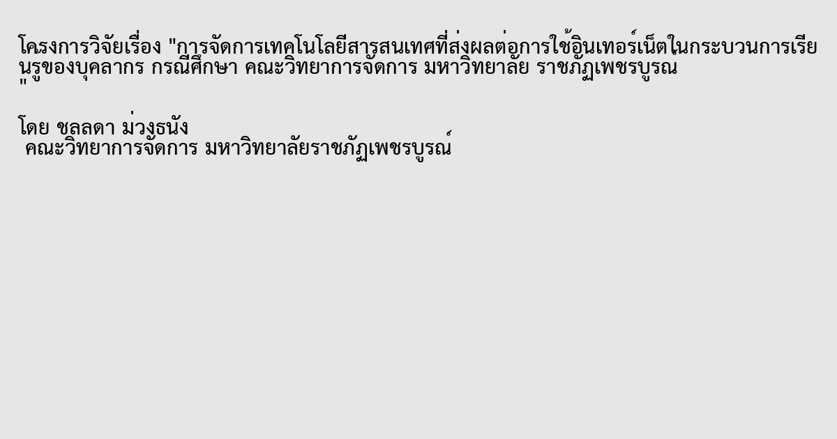 การจัดการเทคโนโลยีสารสนเทศที่ส่งผลต่อการใช้อินเทอร์เน็ตในกระบวนการเรียนรู้ของบุคลากร กรณีศึกษา คณะวิทยาการจัดการ มหาวิทยาลัย ราชภัฏเพชรบูรณ์