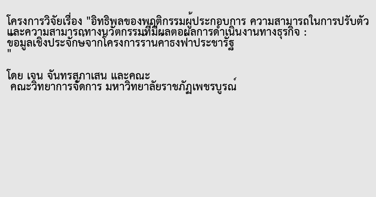 อิทธิพลของพฤติกรรมผู้ประกอบการ ความสามารถในการปรับตัว และความสามารถทางนวัตกรรมที่มีผลต่อผลการดำเนินงานทางธุรกิจ : ข้อมูลเชิงประจักษ์จากโครงการร้านค้าธงฟ้าประชารัฐ