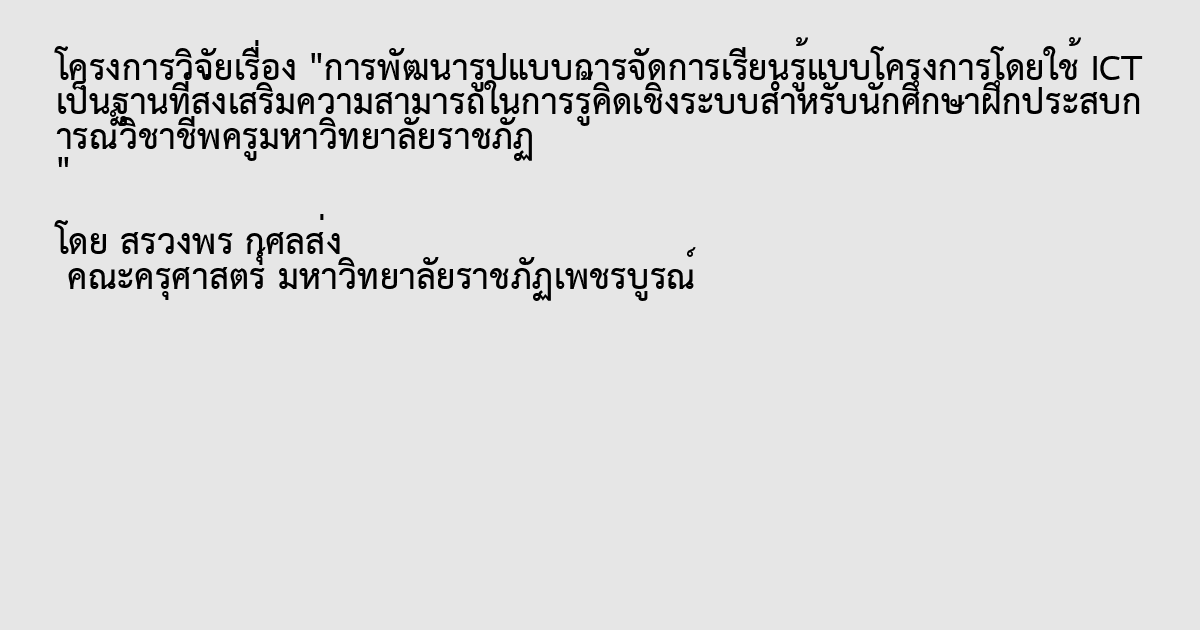 การพัฒนารูปแบบการจัดการเรียนรู้แบบโครงการโดยใช้ ICT เป็นฐานที่ส่งเสริมความสามารถในการรู้คิดเชิงระบบสำหรับนักศึกษาฝึกประสบการณ์วิชาชีพครูมหาวิทยาลัยราชภัฏ