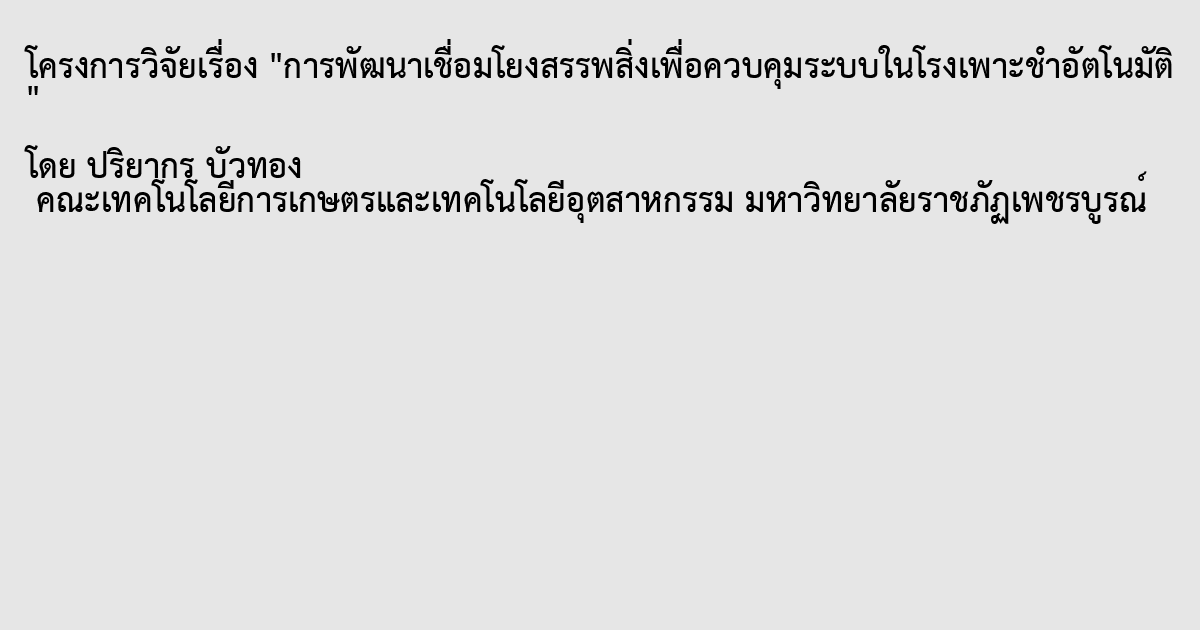 การพัฒนาเชื่อมโยงสรรพสิ่งเพื่อควบคุมระบบในโรงเพาะชำอัตโนมัติ