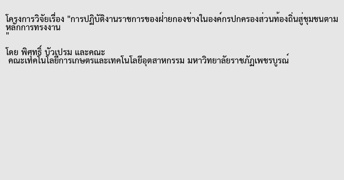 การปฏิบัติงานราชการ,ฝ่ายกองช่าง,องค์กรปกครองส่วนท้องถิ่นจังหวัดเพชรบูรณ์,behavior agencies employed,technical Division,local government organization