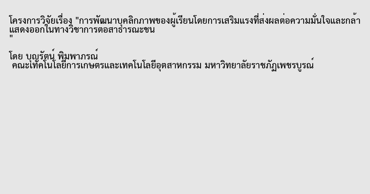 การพัฒนาบุคลิกภาพของผู้เรียนโดยการเสริมแรงที่ส่งผลต่อความมั่นใจและกล้าแสดงออกในทางวิชาการต่อสาธารณะชน