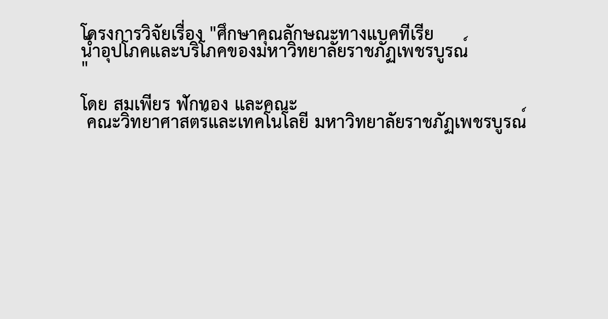 ศึกษาคุณลักษณะทางแบคทีเรีย น้ำอุปโภคและบริโภคของมหาวิทยาลัยราชภัฏเพชรบูรณ์