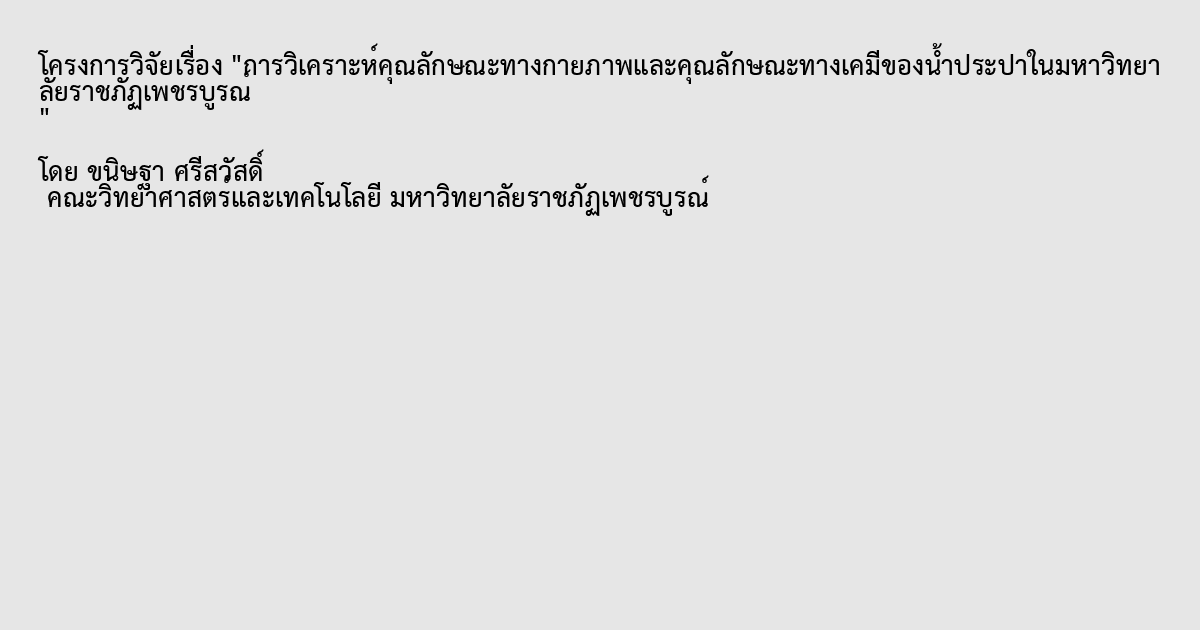 การวิเคราะห์คุณลักษณะทางกายภาพและคุณลักษณะทางเคมีของน้ำประปาในมหาวิทยาลัยราชภัฏเพชรบูรณ์