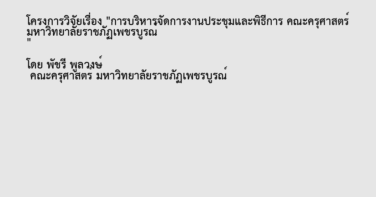 การบริหารจัดการงานประชุมและพิธีการ,อาจารย์และเจ้าหน้าที่คณะครุศาสตร์ มหาวิทยาลัยราชภัฏเพชรบูรณ์,Management of meetings and ceremonies,faculty and staff of the Faculty of Education Rajabhat University Phetchabun