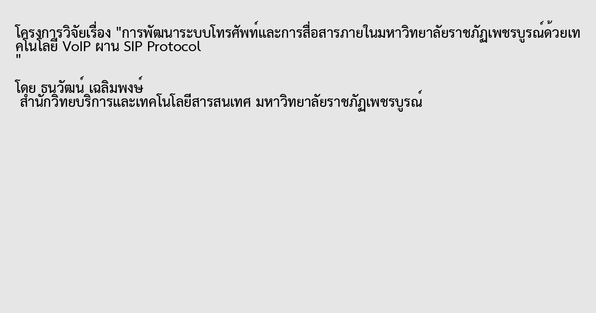 การพัฒนาระบบโทรศัพท์และการสื่อสารภายในมหาวิทยาลัยราชภัฏเพชรบูรณ์ด้วยเทคโนโลยี VoIP ผ่าน SIP Protocol