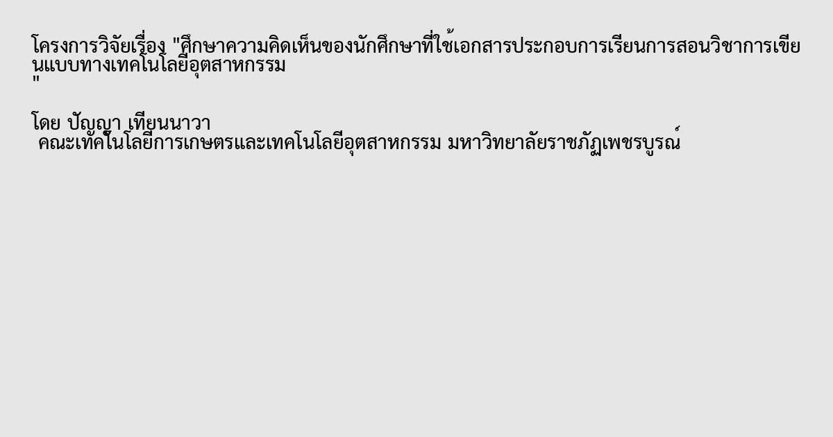 ศึกษาความคิดเห็นของนักศึกษาที่ใช้เอกสารประกอบการเรียนการสอนวิชาการเขียนแบบทางเทคโนโลยีอุตสาหกรรม
