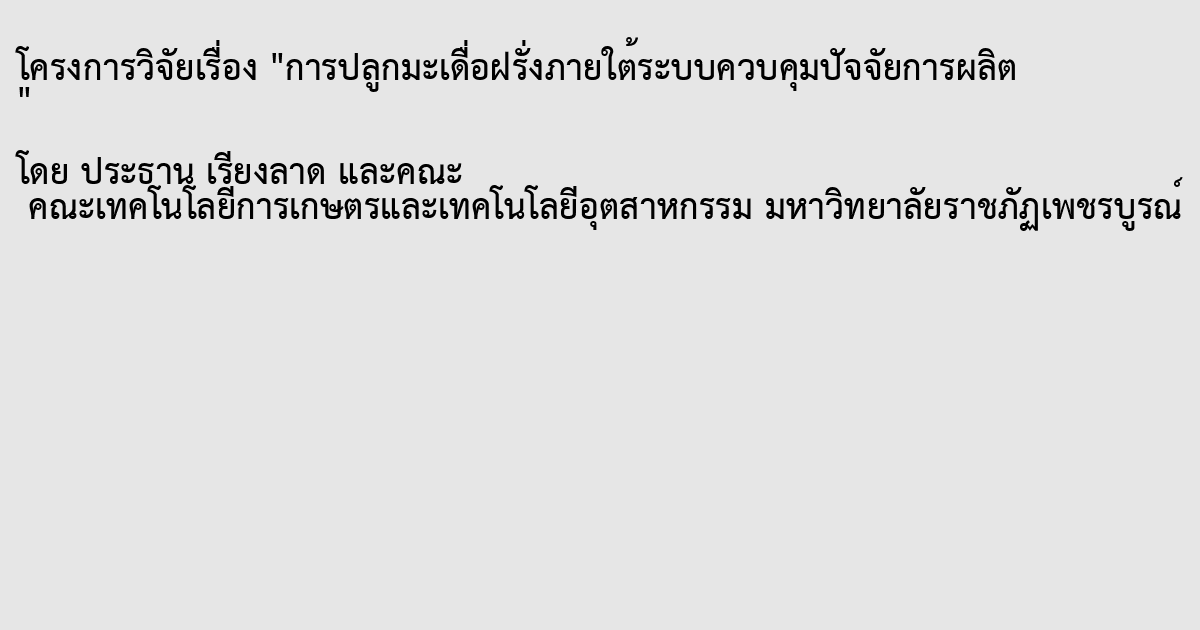 การพัฒนาปลูกมะเดื่อฝรั่งภายใต้ระบบควบคุมปัจจัยการผลิตแบบมีส่วนร่วมกับเกษตรกรผู้ปลูกมเดื่อฝรั่ง จังหวัดเพชรบูรณ์ ใช้กระบวนการวิจัยเชิงคุณภาพและเชิงปริมาณประกอบด้วย การศึกษารวบรวมองค์ความรู้ปัจจัยที่ส่งผลต่อการผลิตมะเดื่อฝรั่ง การพัฒนาสนับสนุนในด้านความรู้ เงินลงทุน จะส่งผลดีให้การพัฒนาผลิตมะเดื่อฝรั่งมีคุณภาพสูง นอกจากนี้การร่วมมือรวมกลุ่มให้เข้มแข็งจะแก้ปัญหาการตลาด การสนับสนุนของจังหวัด การร่วมมือกันของทุกภาคส่วนช่วยให้มะเดื่อฝรั่งเป็นผลไม้ สินค้าใหม่ที่เป็นเอกลักษณ์ของจังหวัดเพชรบูรณ์ ส่งผลต่อการผลิตมะเดื่อฝรั่งจากฐานภูมิปัญญาท้องถิ่น เทคนิค การยอมรับเทคโนโลยีเพื่อการพัฒนาอาชีพและสนับสนุนการประกอบอาชีพให้เหมาะสมกับท้องถิ่น