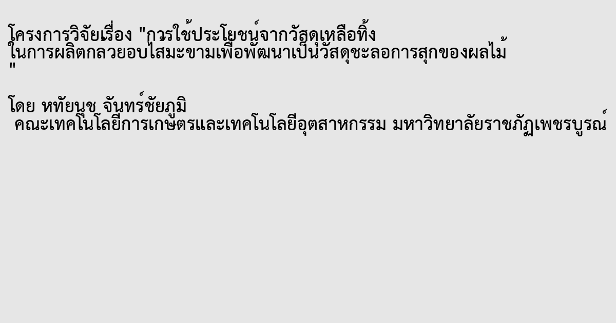 การใช้ประโยชน์จากวัสดุเหลือทิ้ง ในการผลิตกล้วยอบไส้มะขามเพื่อพัฒนาเป็นวัสดุชะลอการสุกของผลไม้