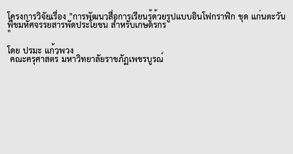 การพัฒนาสื่อการเรียนรู้ด้วยรูปแบบอินโฟกราฟิก ชุด แก่นตะวัน พืชมหัศจรรย์สารพัดประโยชน์ สำหรับเกษตรกร