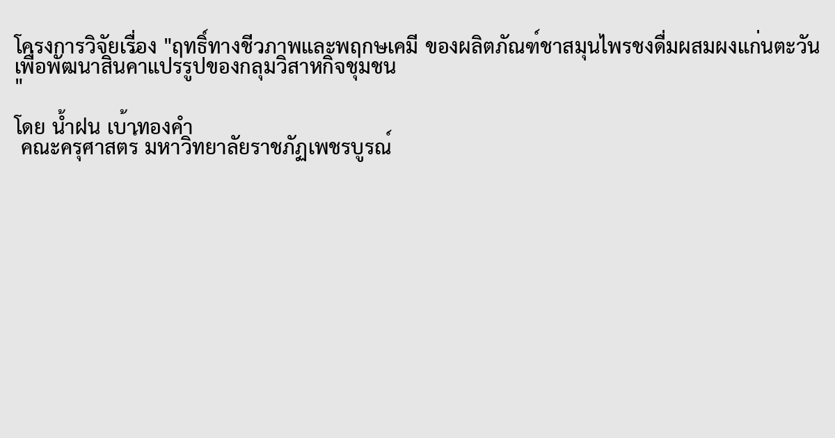ฤทธิ์ทางชีวภาพและพฤกษเคมี ของผลิตภัณฑ์ชาสมุนไพรชงดื่มผสมผงแก่นตะวัน เพื่อพัฒนาสินค้าแปรรูปของกลุ่มวิสาหกิจชุมชน
