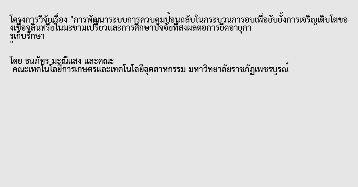 การพัฒนาระบบการควบคุมป้อนกลับในกระบวนการอบเพื่อยับยั้งการเจริญเติบโตของเชื้อจุลินทรีย์ในมะขามเปรี้ยวและการศึกษาปัจจัยที่ส่งผลต่อการยืดอายุการเก็บรักษา