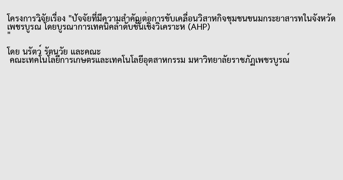 ปัจจัยที่มีความสำคัญต่อการขับเคลื่อนวิสาหกิจชุมชนขนมกระยาสารทในจังหวัดเพชรบูรณ์ โดยบูรณาการเทคนิคลำดับชั้นเชิงวิเคราะห์ (AHP)